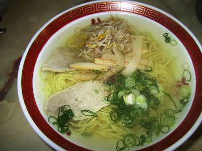 出てきたのは…澄んではいるものの醤油っぽい色のラーメン。…塩じゃないのか?